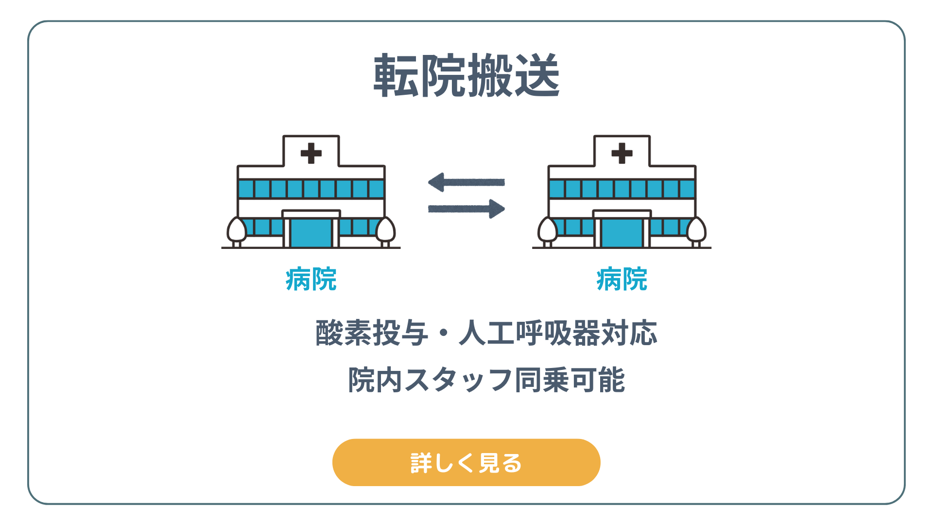 救急車までは必要ではないけど、自家用車での移動は心配…。移動中の容態を見てくれる上に、紹介状の引継ぎや申し送りができることは安心材料でした。